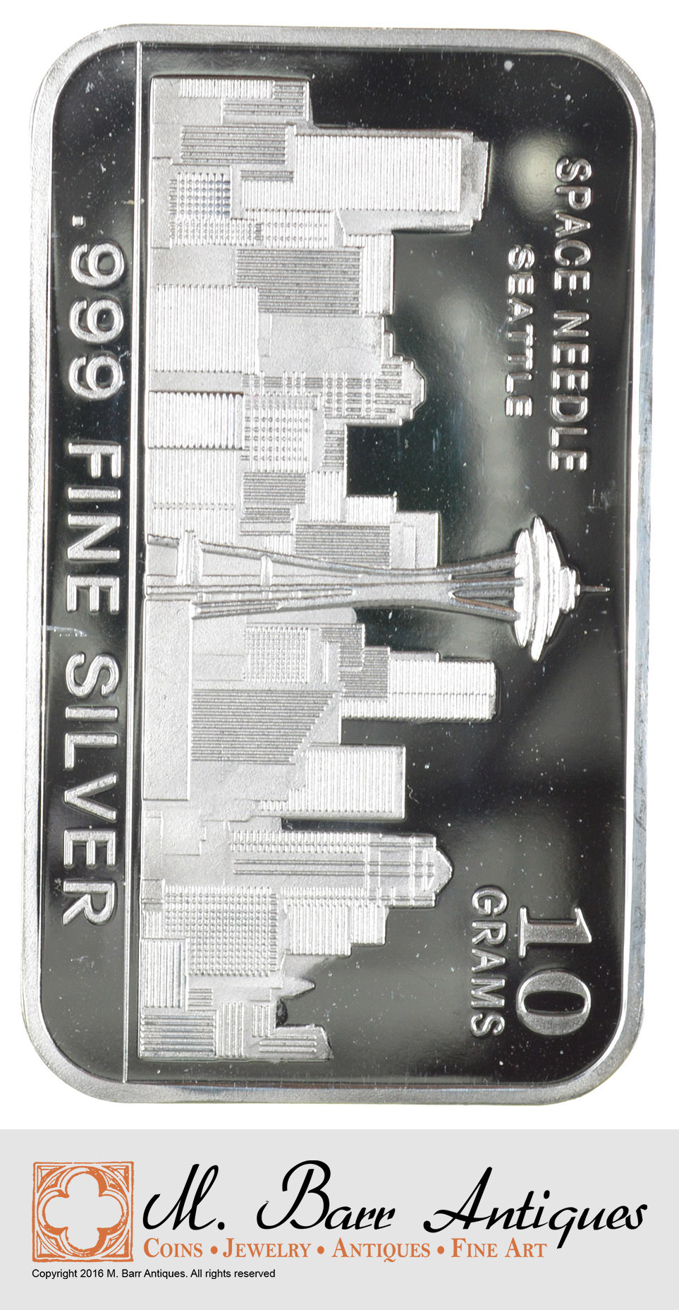 Rare Limited Edition .999 Fine Silver Space Needle Seattle Commemorative Bar 10 Grams
