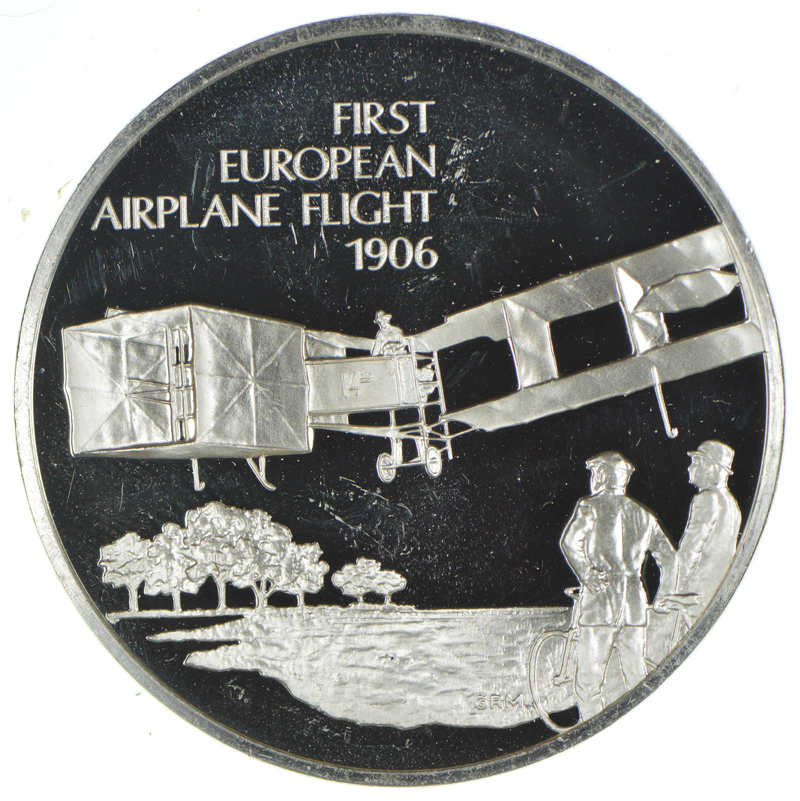 Rare - Limited Edition Flight Series First European Airplane Flight 1906 Sterling Large Silver Medallion - 1.218 Troy Ounces!
