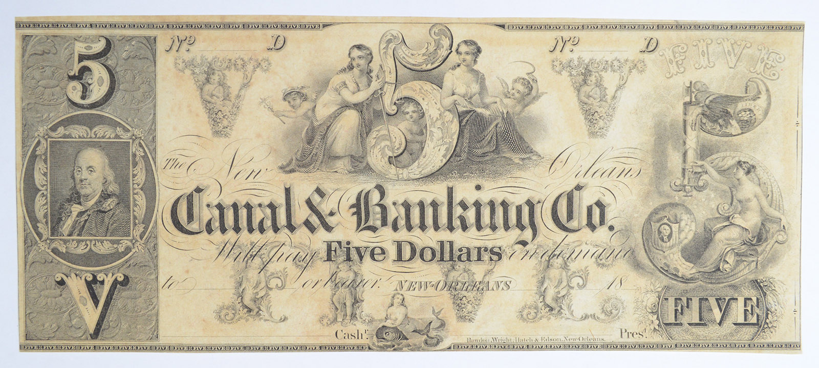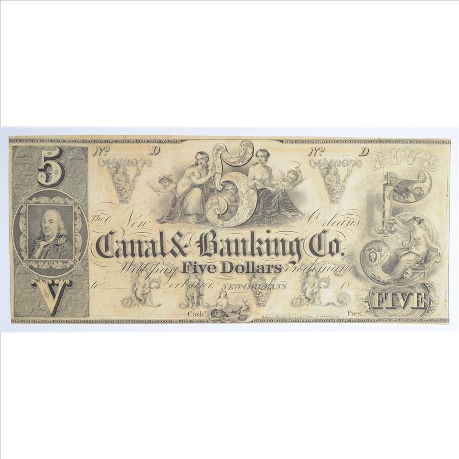RARE - Obsolete Currency 1800s The New Orleans Canal & Banking Co. $5.00 Very Historic!