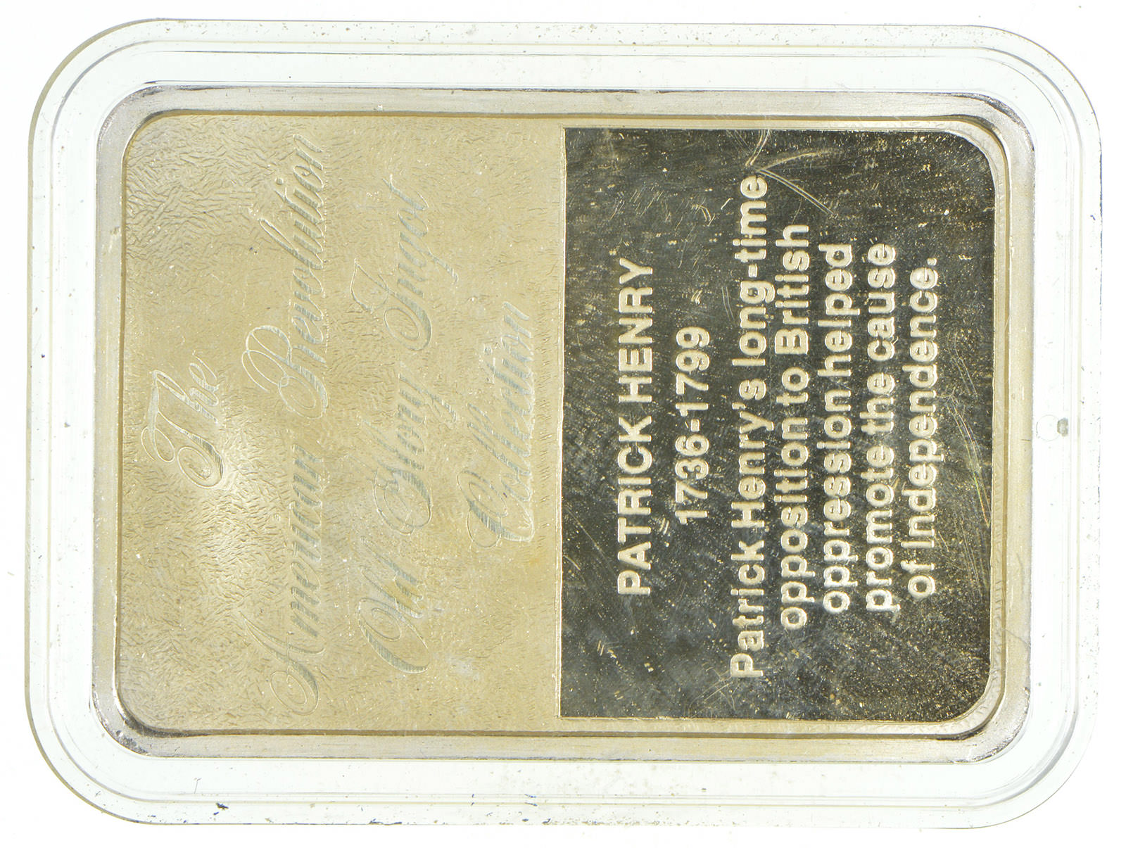 Rare Silver 1 Troy Oz American Revolution Old Glory Ingot Collection - Patrick Henry .999 Fine Silver