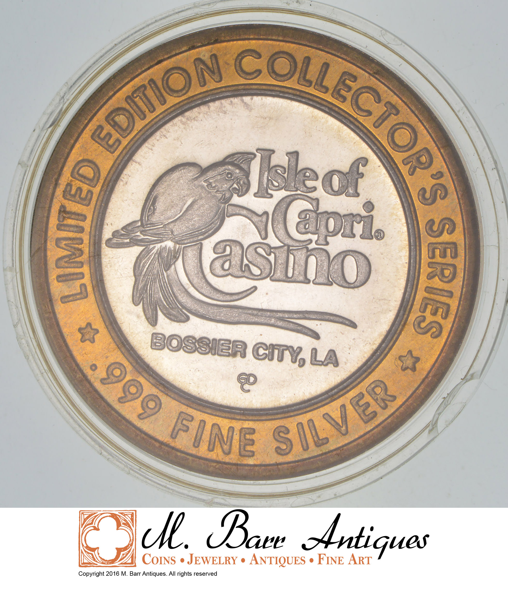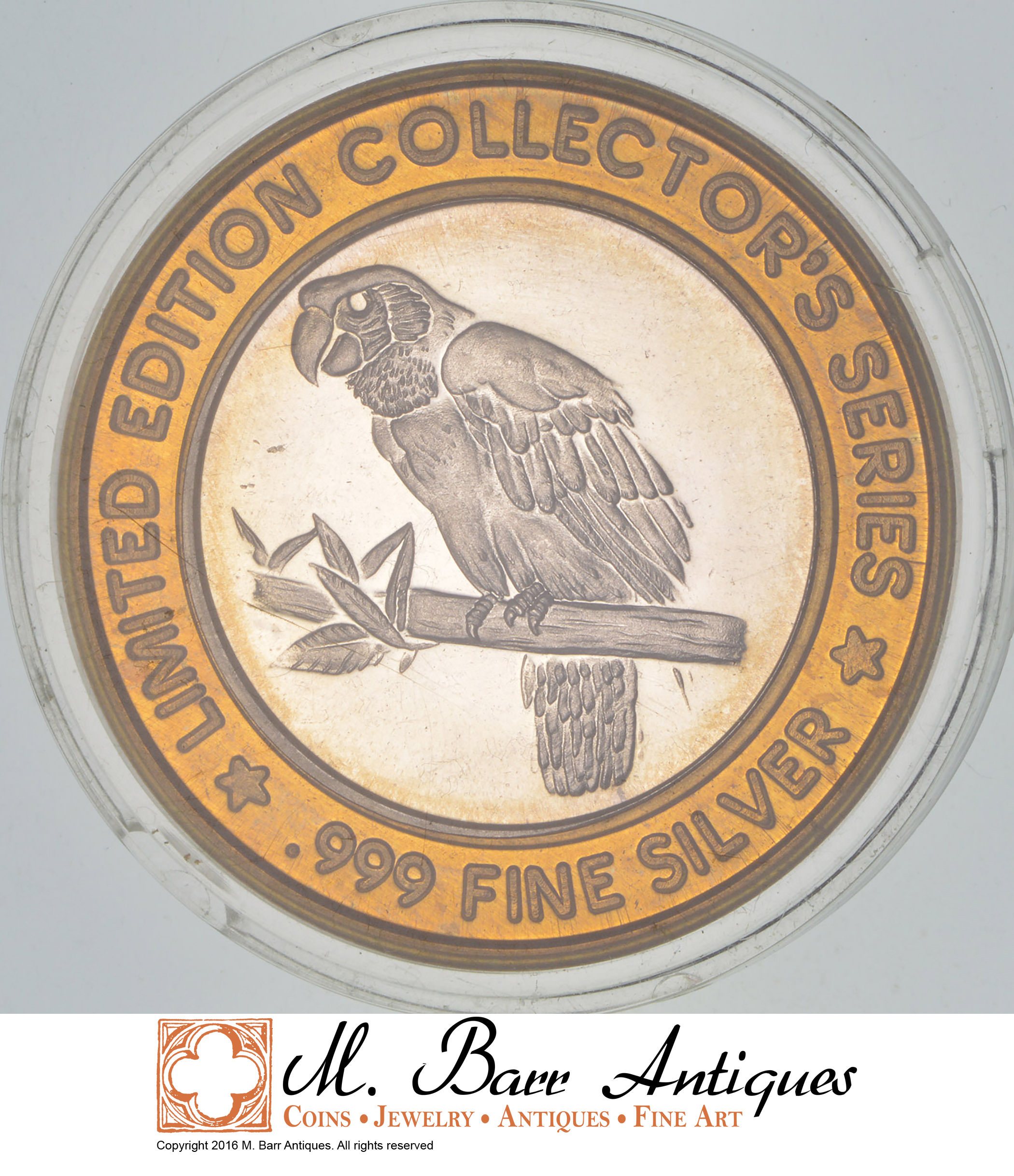 Rare Silver 43.5 Grams Isle Of Capri Casino Parrot Round .999 Fine Silver