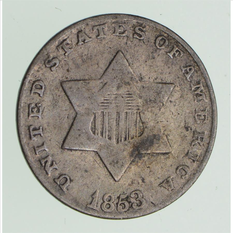RARE Silver Trime - 1853 Three Cent Silver - 3 Cent Early US Coin - Look it up!