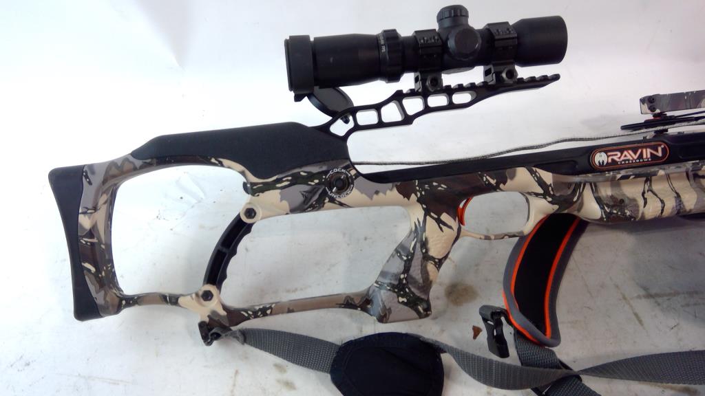 Get a great deal with this online auction presented by PropertyRoom.com on behalf of a law enforcement or public agency client. Model: Ravin Color: Camo Bow Length: 35" Accessories: None Cosmetic Condition: Good with scratches Shipment by PropertyRoom to any jurisdiction does not mean this item is legal in such jurisdiction. It is your responsibility to have knowledge of, obey, or comply with all applicable laws relating to this item.