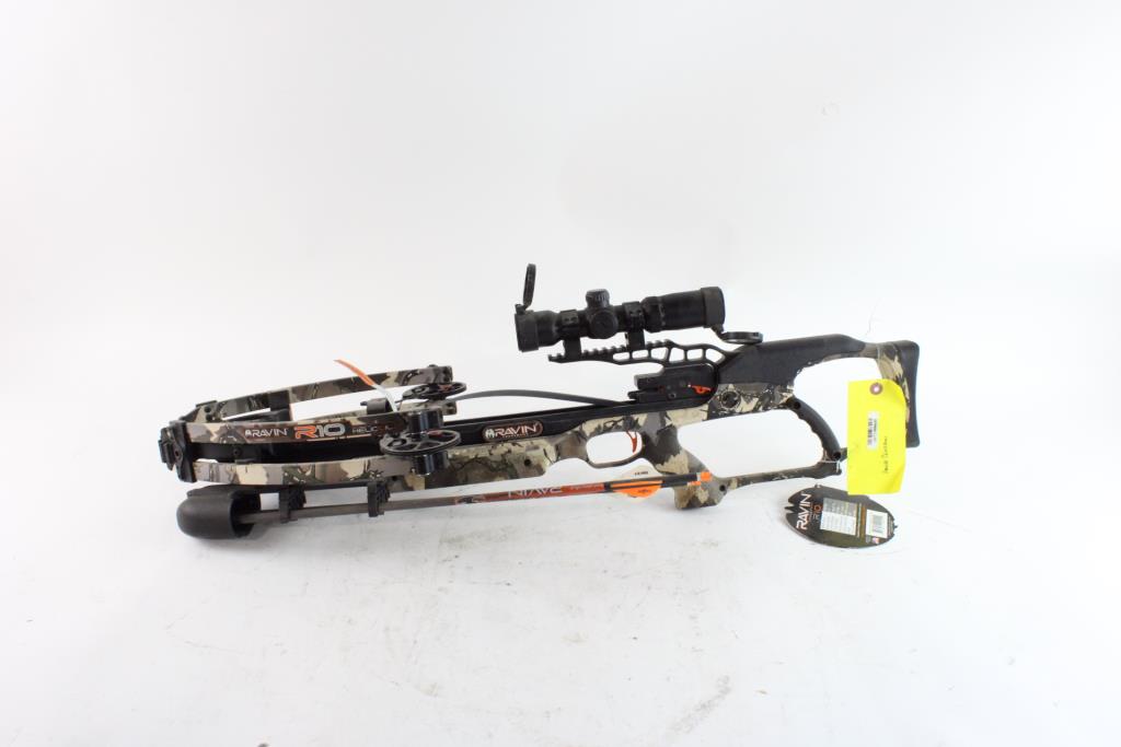 Get a great deal with this online auction presented by PropertyRoom.com on behalf of a law enforcement or public agency client. Model: R10 Color: Camo Bow Length: 34" STR: 29" CBL: 6 5/16" Draw Weight: Unknown Accessories: Arrows Cosmetic Condition: Good with light dirt & scratches Shipment by PropertyRoom to any jurisdiction does not mean this item is legal in such jurisdiction. It is your responsibility to have knowledge of, obey, or comply with all applicable laws relating to this item.