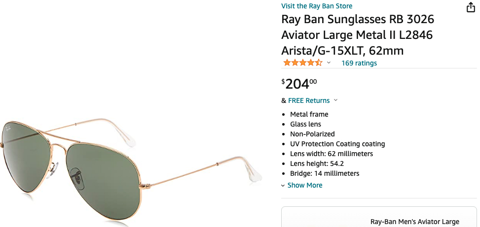 Rayban Aviator Sunglasses