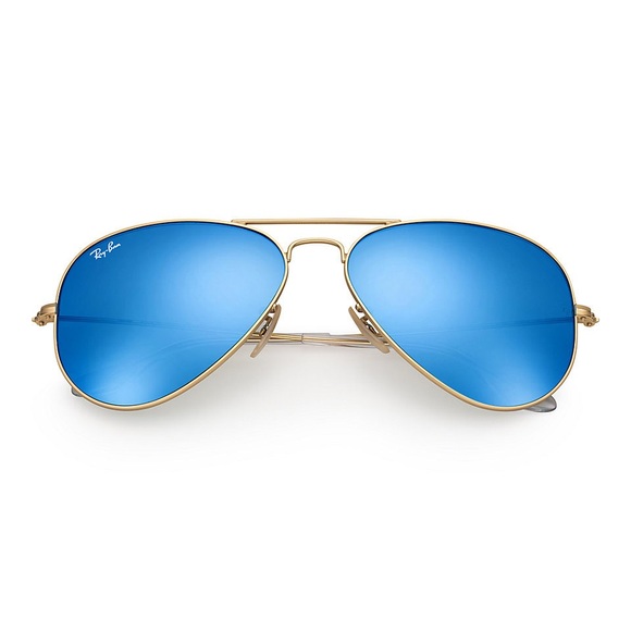 Rayban Aviator Sunglasses - with Case - 3026 - Gold Frame/ Blue Mirror Lens