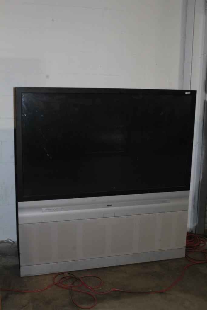 Get a great deal with this online auction for a TV presented by Property Room on behalf of law enforcement or public agency client. Model: R61WH76 Screen Size: 60" Date of Manufacture: Feb 2007 Measurements: Approx 56" x 58" x 24" Base: Yes Remote Control: No Power Cord: Yes Cosmetic Condition: Good, nicks and scratches throughout. Some scuffs on screen (may clean off, may not). Testing Results: Item was tested for power only and it powered on, displayed menu. Picture is somewhat fuzzy and screen is slow to warm up (may be age-related). Input and output ports were not tested and may be non-functional. Item is sold "As Is".