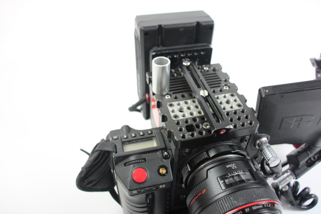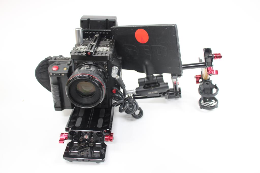 - Accessories: RED Side Handle, RED Touch 7.0" LCD Screen (Model 730-0007), Canon EF 50mm 1:1.2 72mm Lens, Olympus Lens Hood (Model LH-76), Shure 93 Miniature Lavalier Microphone, Wooden Camera Brand Battery Pack Mount, and Zacuto Brand Rails and Mounts