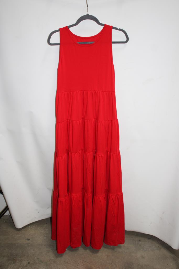 Red Sleeveless Maxi Dress, Size L
