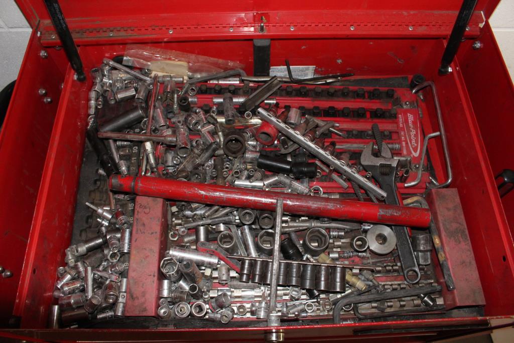 Red Snap-On Rolling Tool Box With Assorted Tools