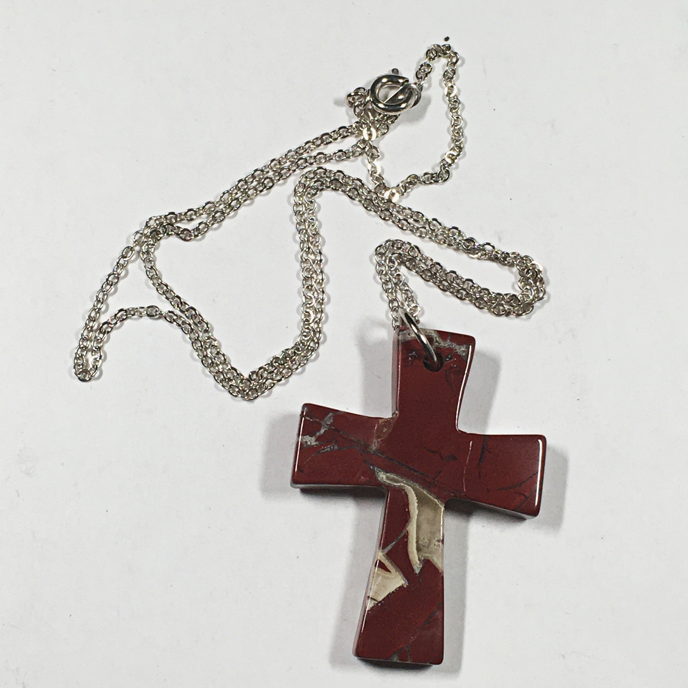 Red Stone Cross on Silver Chain*Cross is 1.5" Long