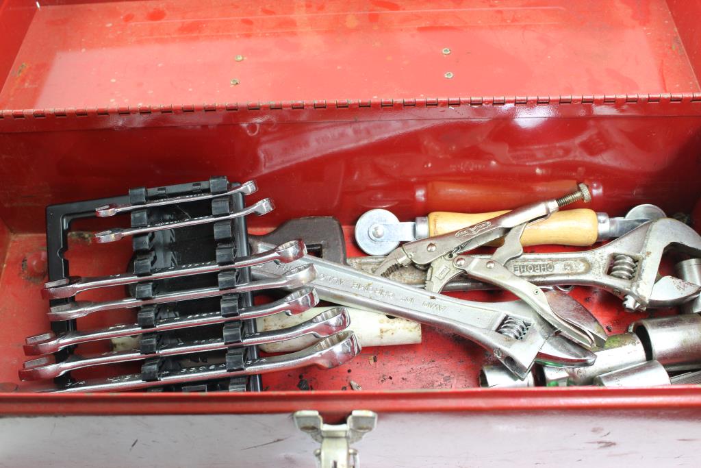 Red Toolbox With Husky Wrenches, Craftsman Socket And More Tools