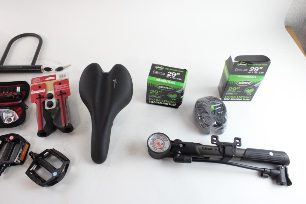 Get a great deal with this online auction presented by PropertyRoom.com on behalf of a law enforcement or public agency client. - Slime 29" self sealing tubes, Selle Royal seat, Blackburn tire pump, pedals, grip & lock