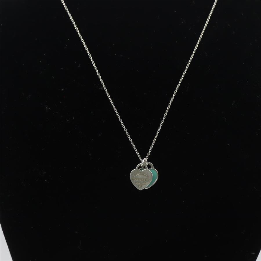 Return To Tiffany & Co Blue Double Heart Tag Pendant