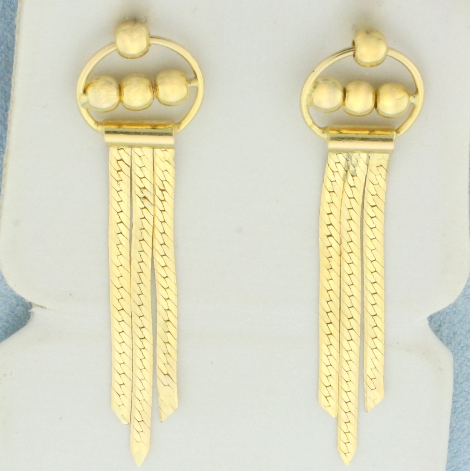Reversable Herringbone Ball Bead Dangle Earrings in 14k Yellow Gold