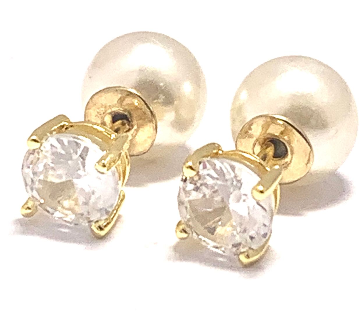Reversible Design 2 IN 1 3.00ctw VVS-F Simulated Diamonds & Pearl Stud Earrings