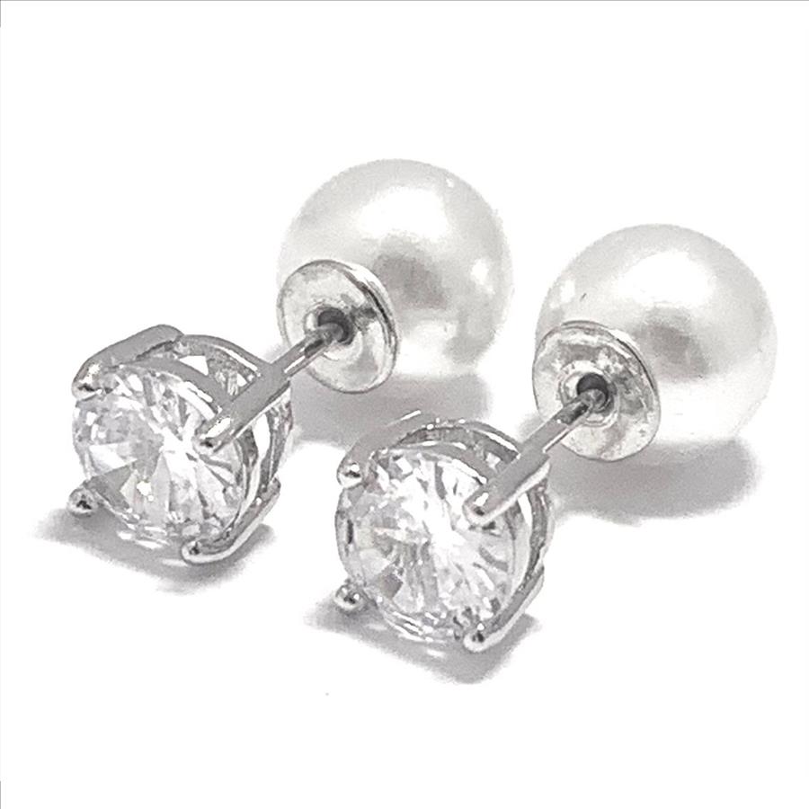 Reversible Design 2 IN 1 3.00ctw VVS-F Simulated Diamonds & Pearl Stud Earrings