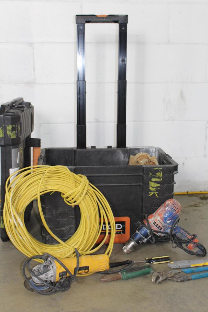 Ridgid Rolling Tool Tote With Assorted Power Tools, 4 Pieces