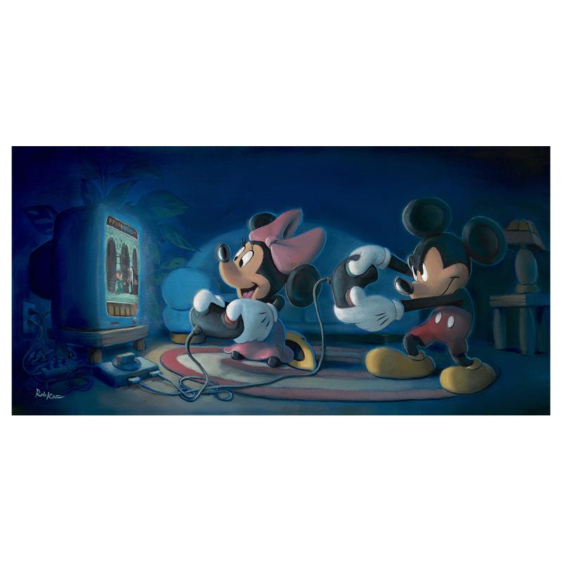 "Game Night" is a limited edition giclee on canvas by Rob Kaz. Part of the Treasures collection from Disney Fine Art, this limited edition comes gallery wrapped and ready to hang and comes with a certificate of authenticity. The edition is limited to 1500 pieces. Item measures approximately 10 x 20".