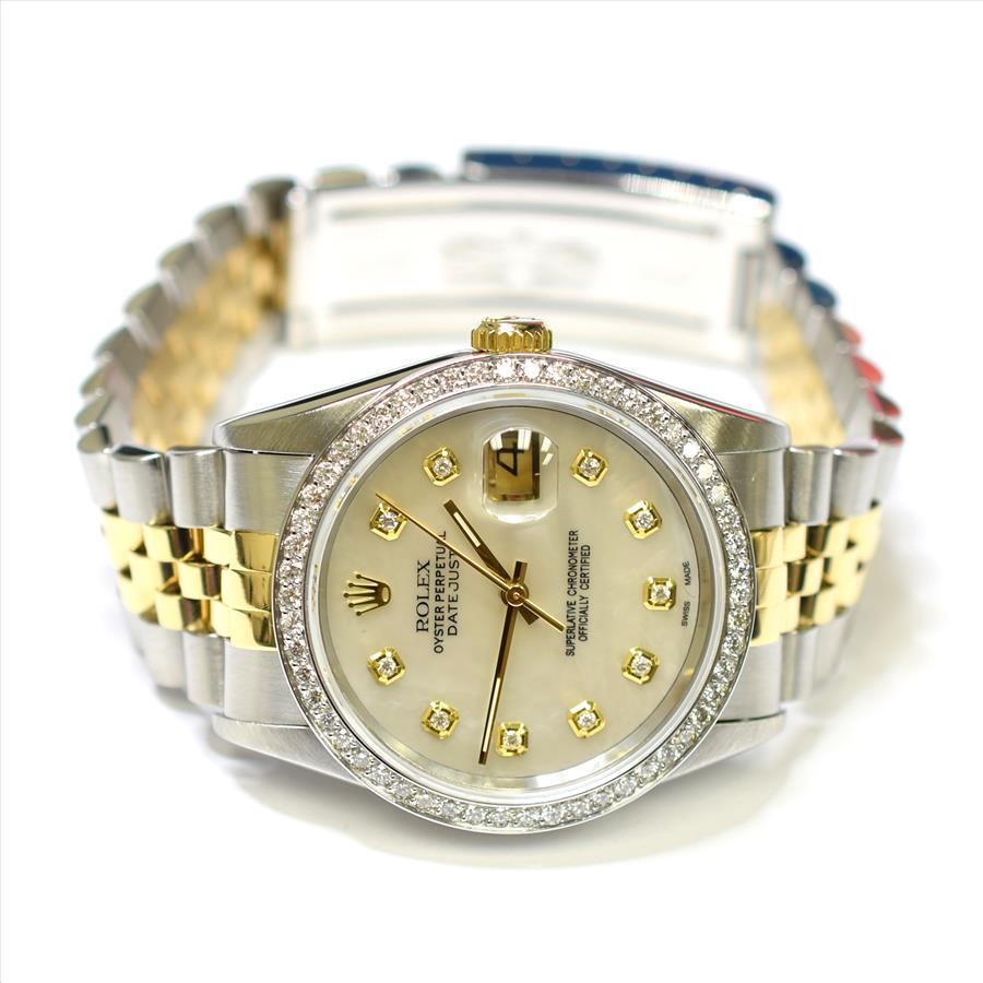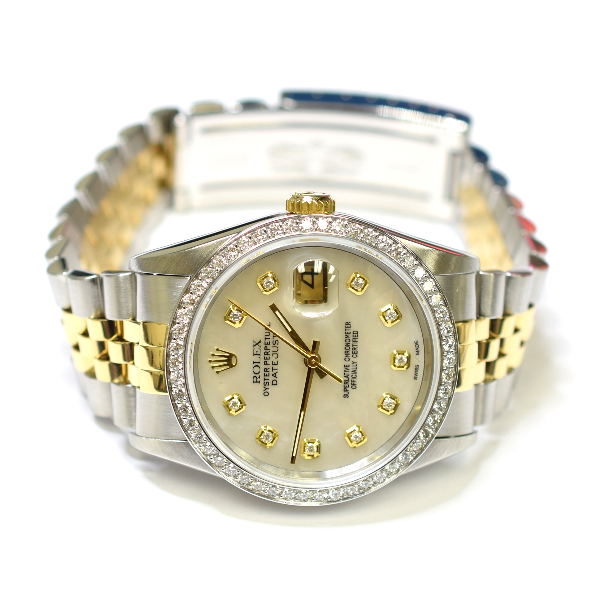 Rolex DateJust 36mm Stainless Steel and 18K Gold Custom Diamonds Watch R16233
