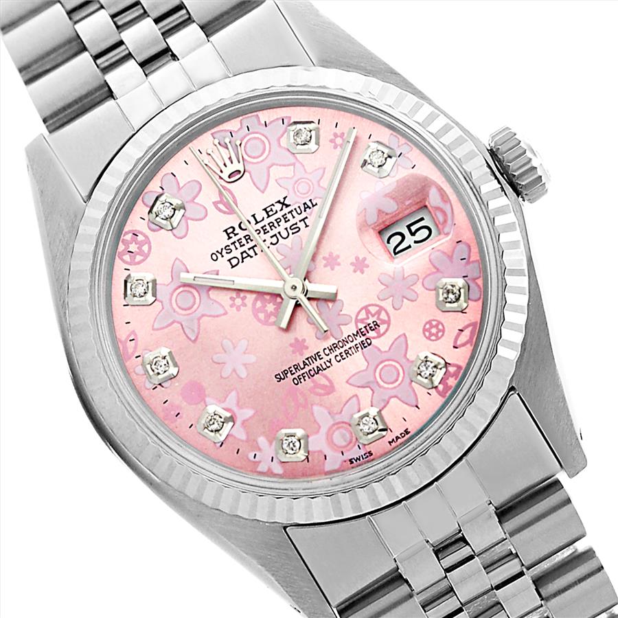 Rolex Datejust Pink Flower Diamond Dial Original Fluted Bezel 36mm