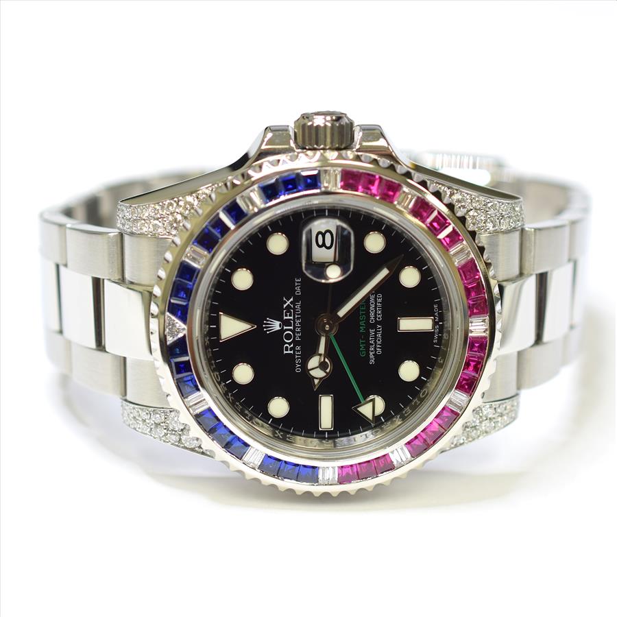 Rolex GMT Master II 40mm Stainless Steel Custom Diamonds Mens Watch 116710