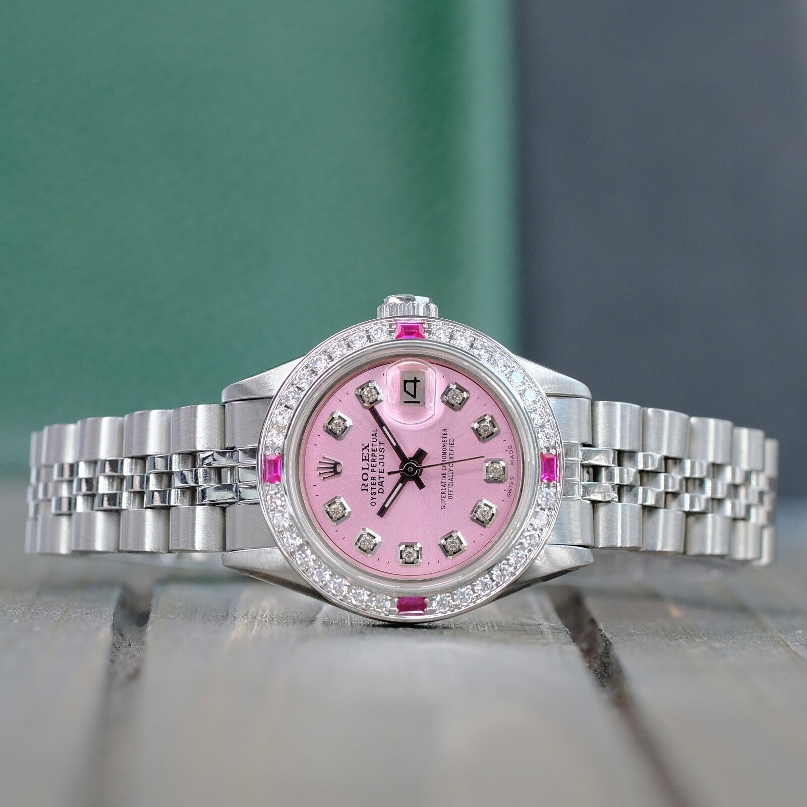 ROLEX LADIES DATEJUST WATCH STAINLESS STEEL PINK DIAL DIAMOND BEZEL 26MM - PREOWNED
