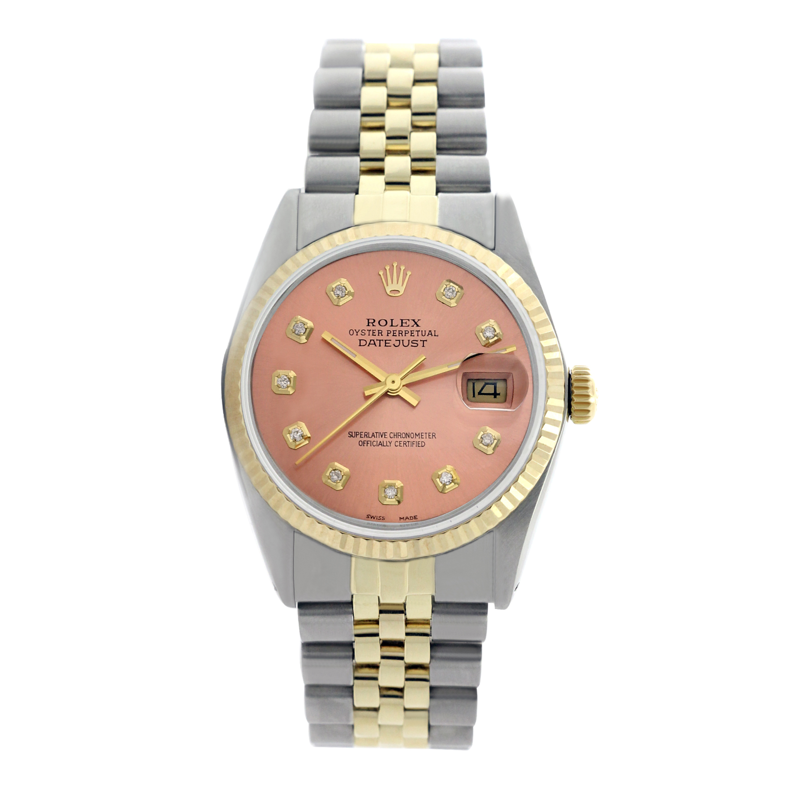 DIAL: Original Rolex Refinished Salmon Dial set with 10 genuine diamonds