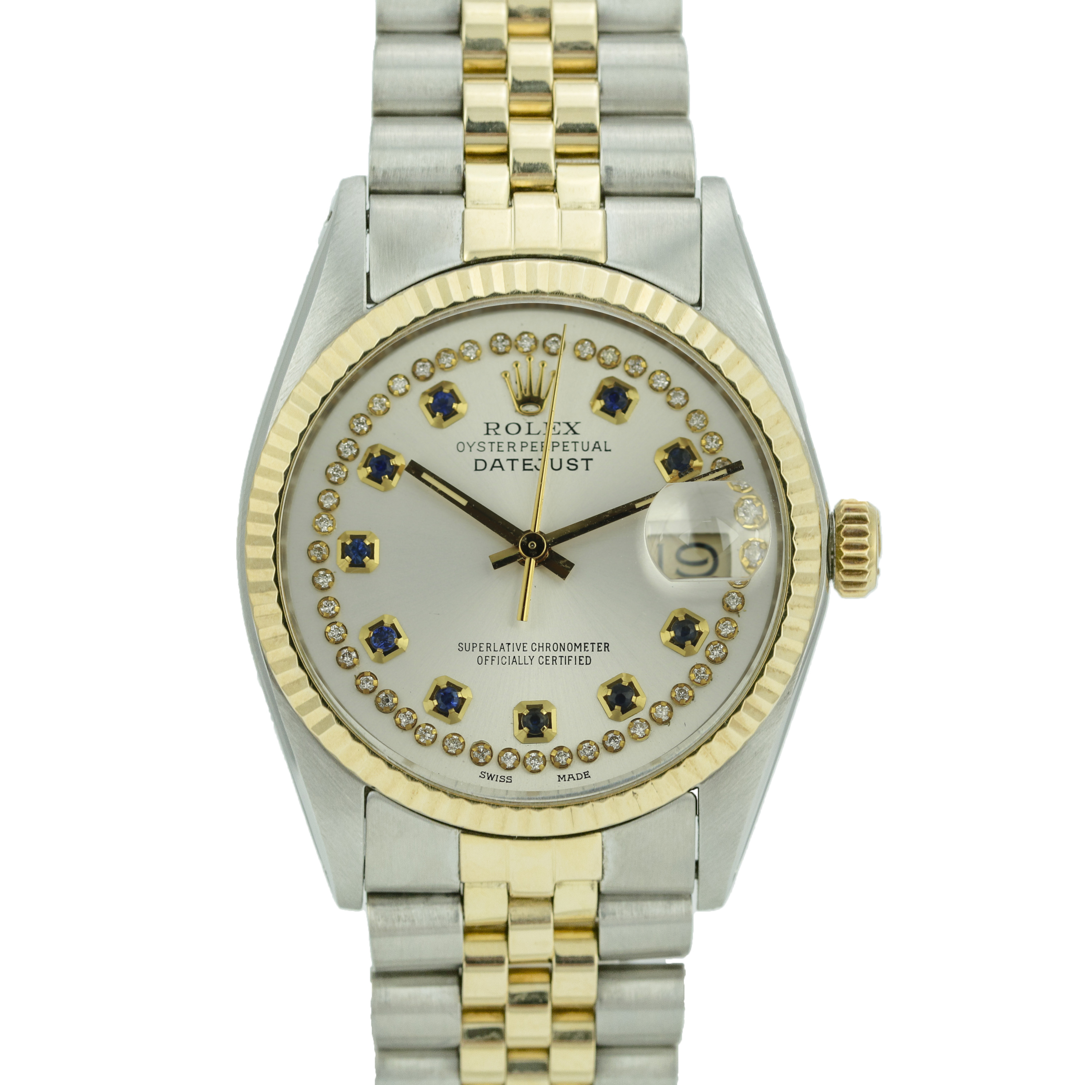 Rolex Mens Datejust Diamond / Sapphire Dial Fluted Bezel 36mm watch