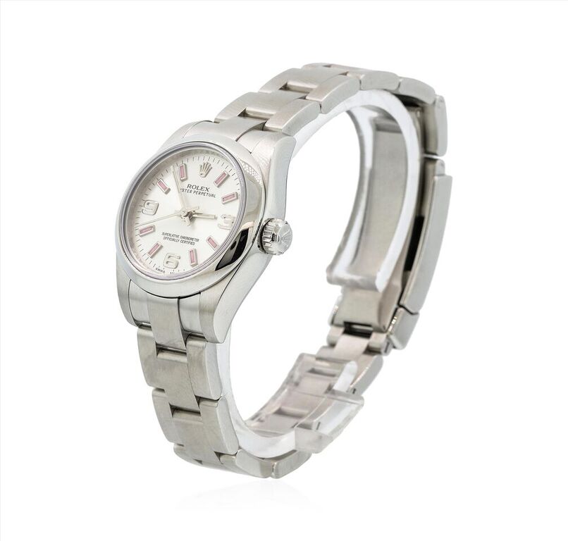 Rolex Oyster Perpetual Stainless Steel Silver Dial Lady's Watch With Authenticity Card