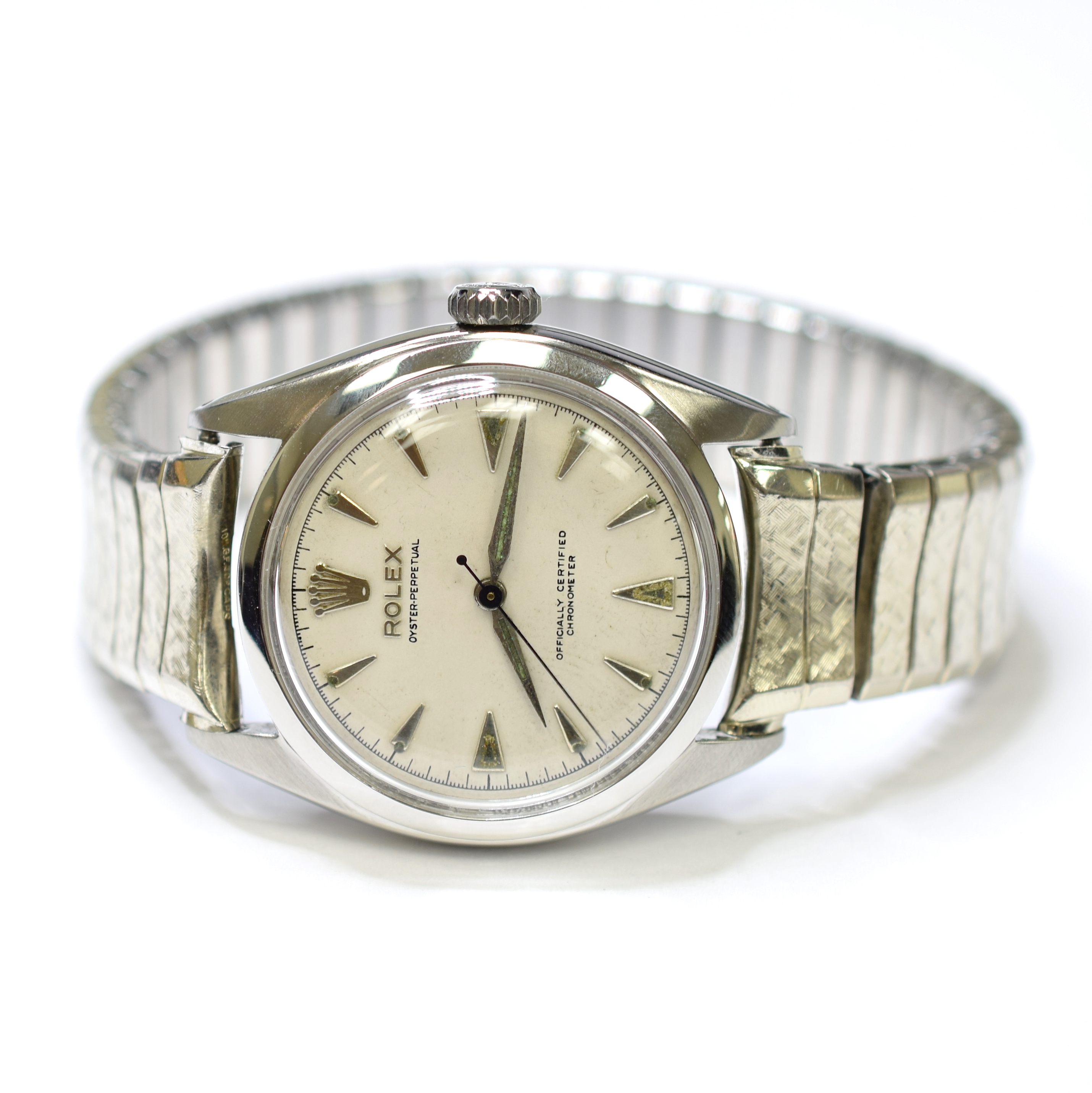 Rolex Oyster Perpetual Vintage 34mm Stainless Steel Watch on Elastic Strap 6084