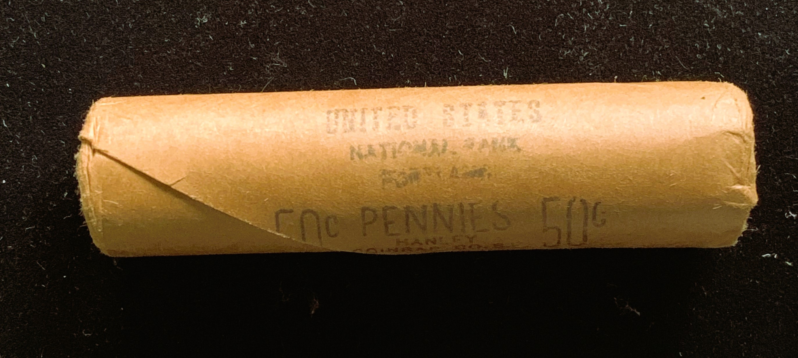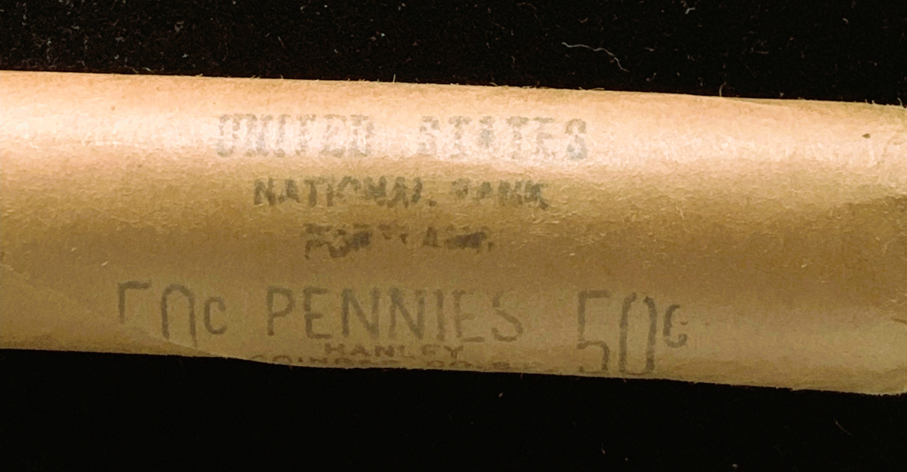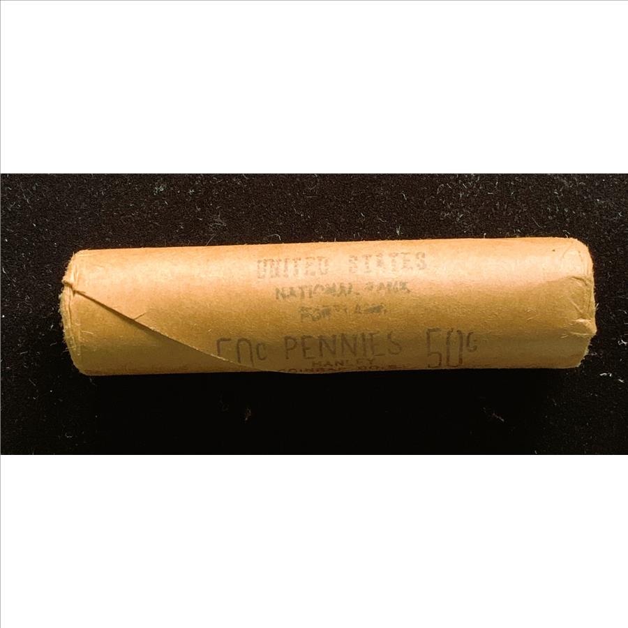 ROLL OF 1969-S BRILLIANT UNCIRCULATED (50) PENNIES, COINS IN ORIG US NATIONAL BANK WRAPPER