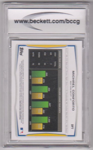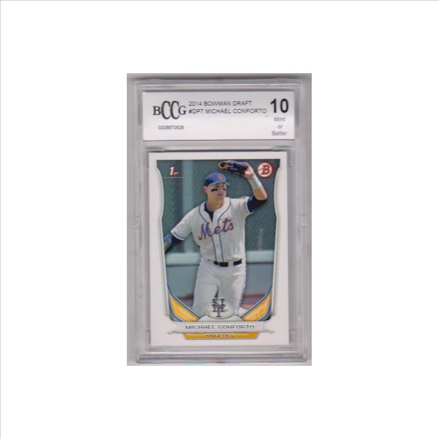 This is a Michael Conforto 2014 Bowman Draft #DP7 rookie card that has been graded a Mint or Better 10 by BCCG.  The holder has minor surface wear, but overall this is a nice high grade Conforto rookie.