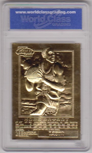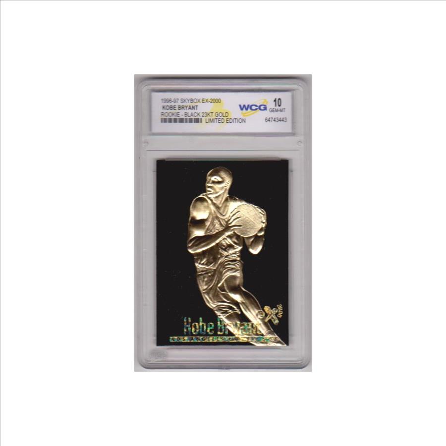 This is a 1996-97 Skybox EX-2000 Black 23 Kt Gold Kobe Bryant rookie card that has been graded a Gem Mint 10 by WCG. The holder has some light surface wear, but overall this is a sharp graded rookie card of this NBA Hall Of Famer.