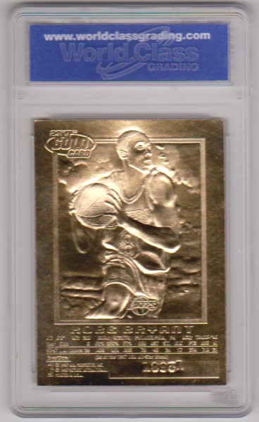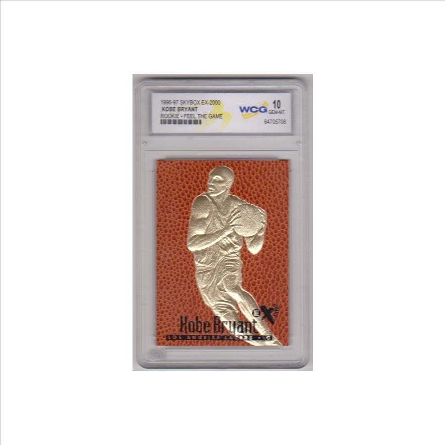 This is a 1996-97 Skybox EX-2000 Feel The Game 23 Kt Gold Kobe Bryant rookie card that has been graded a Gem Mint 10 by WCG. There are a couple of small light surface scuffs on the front of the holder, but overall this is a sharp graded rookie card of this NBA Hall of Famer.