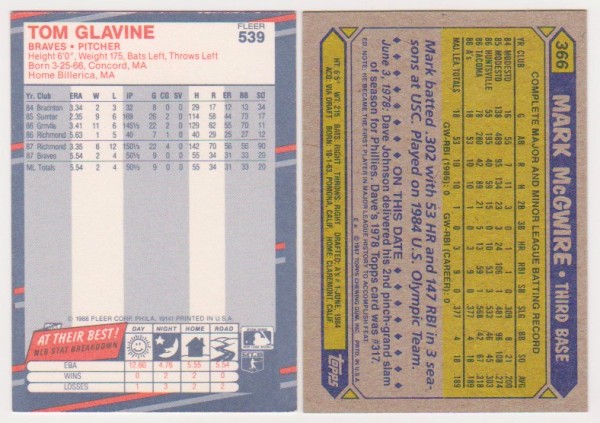 Rookies - Mark McGwire 1987 Topps + Tom Glavine 1988 Fleer Rookie Pair