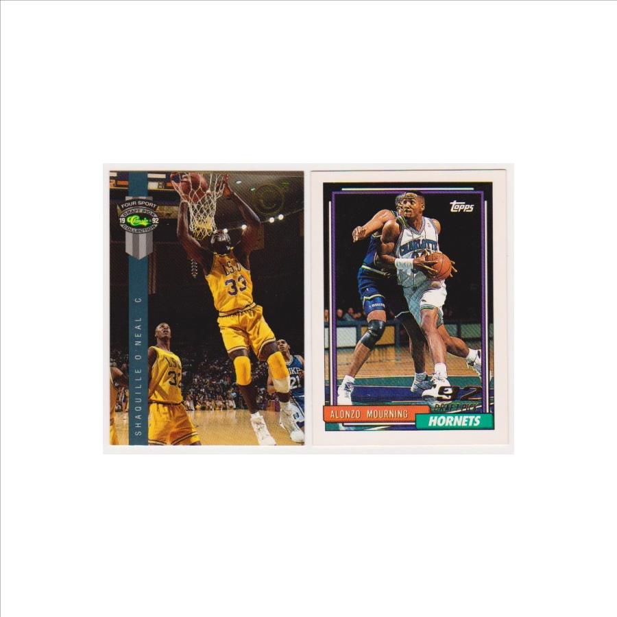 PropertyRoom.com's trusted merchant, Sports Collectibles, presents this online auction for the above Rookies - Shaquille O'Neal 1992 Classic 4-Sport C3 #PR1 Promo + Alonzo Mourning 1992-93 Topps #393 Cards.