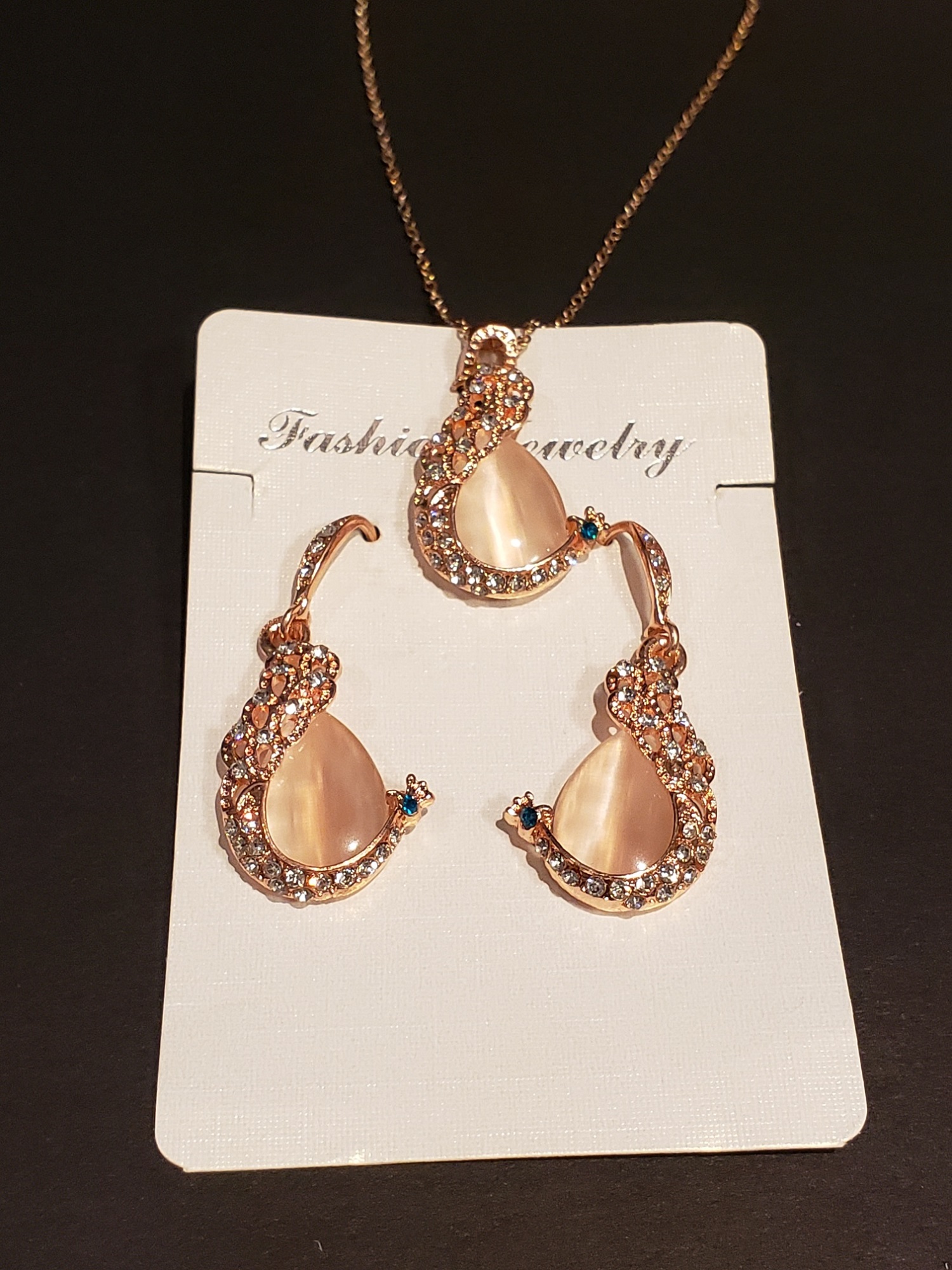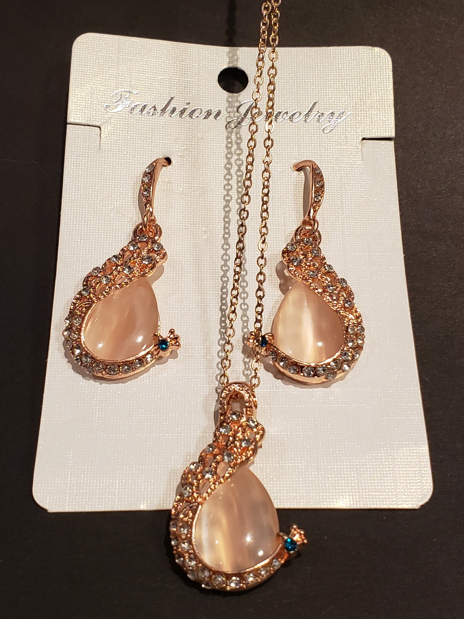 Rose Gold Tone Rhinestones Peacock Jewelry Set