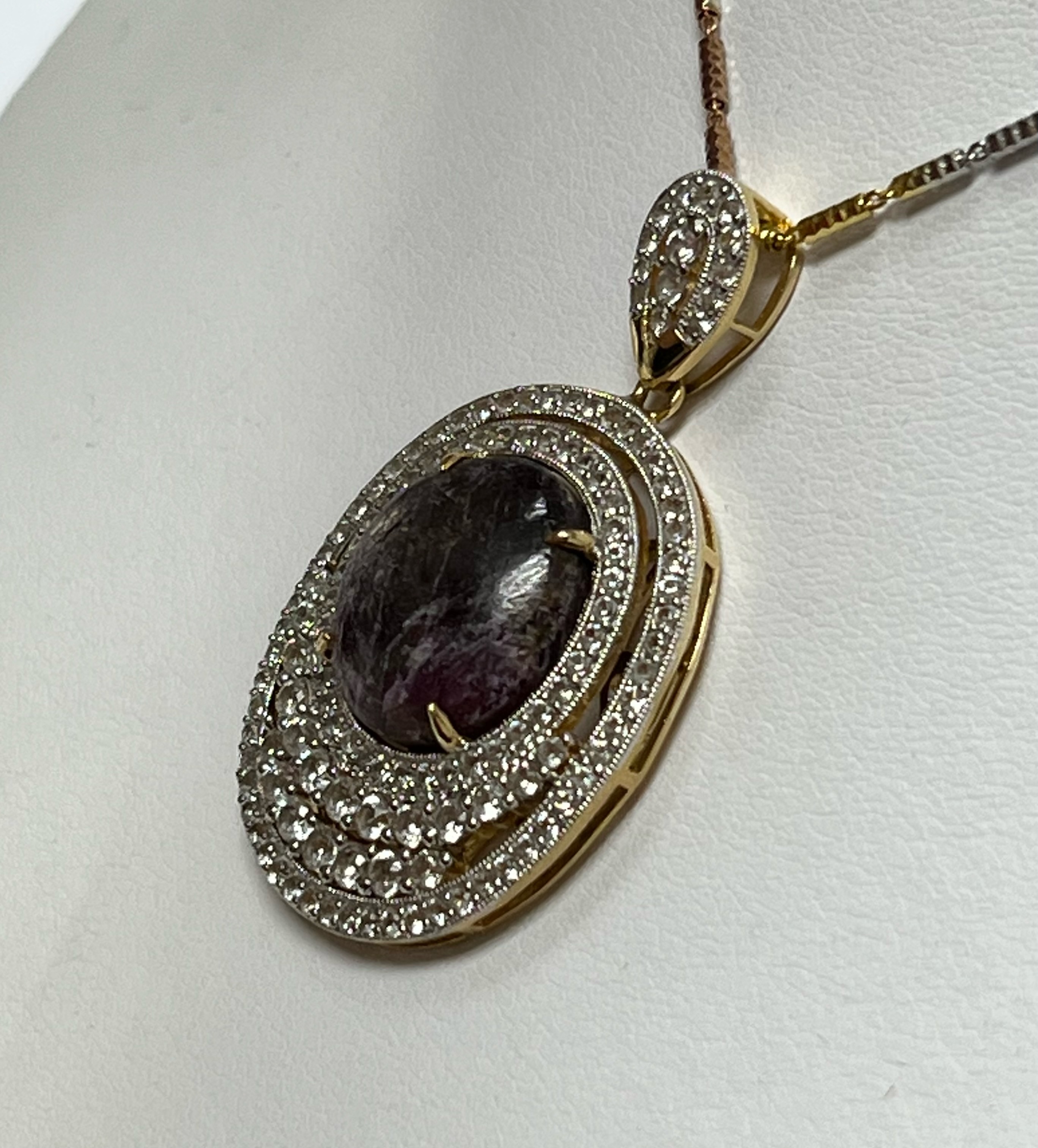 BEAUTIFUL STAR RUBY AND WHITE SAPPHIRE PENDANT AND CHAIN SET IN STERLING SILVER!