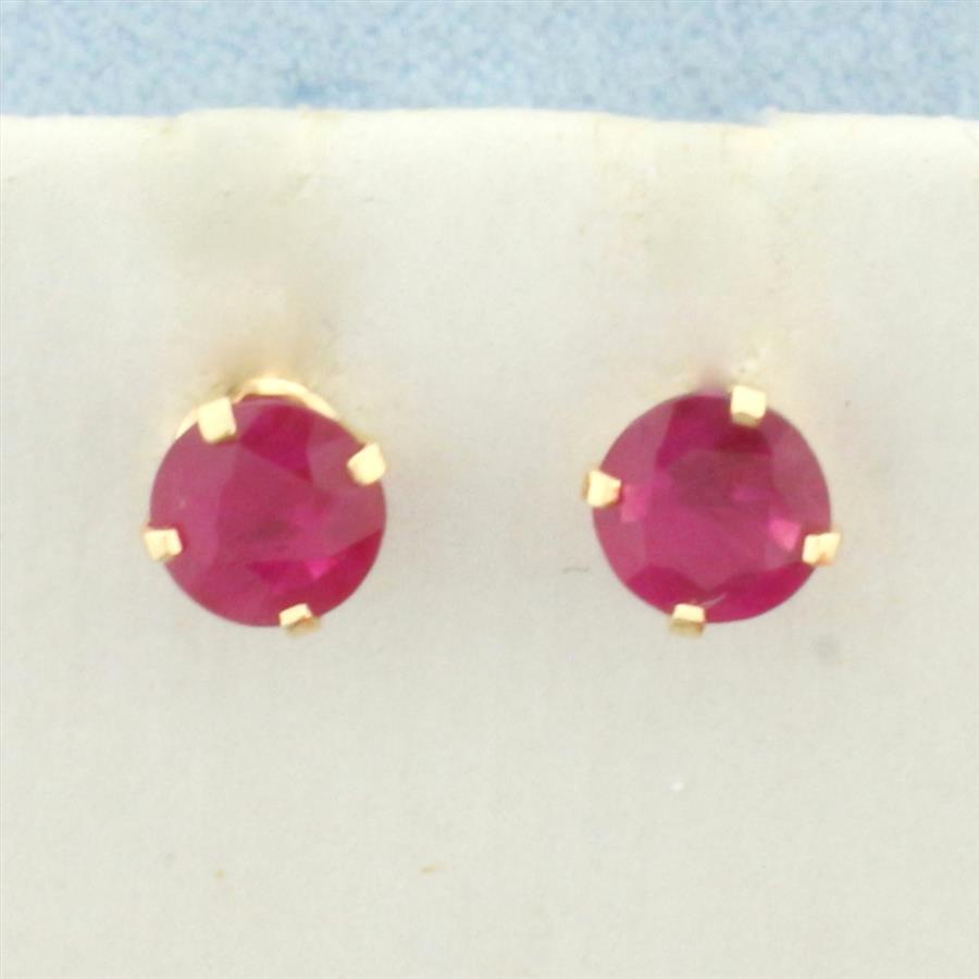 In 14k Yellow Gold. Contains two high quality natural 5mm Ruby gemstones, approximately 3/4ct TW, with vibrant color. Friction backs. .7g.