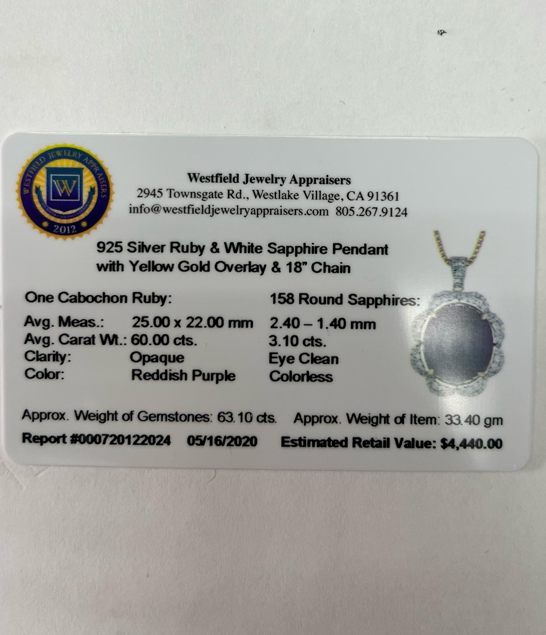 BEAUTIFUL RUBY AND WHITE SAPPHIRE PENDANT AND CHAIN SET IN STERLING SILVER