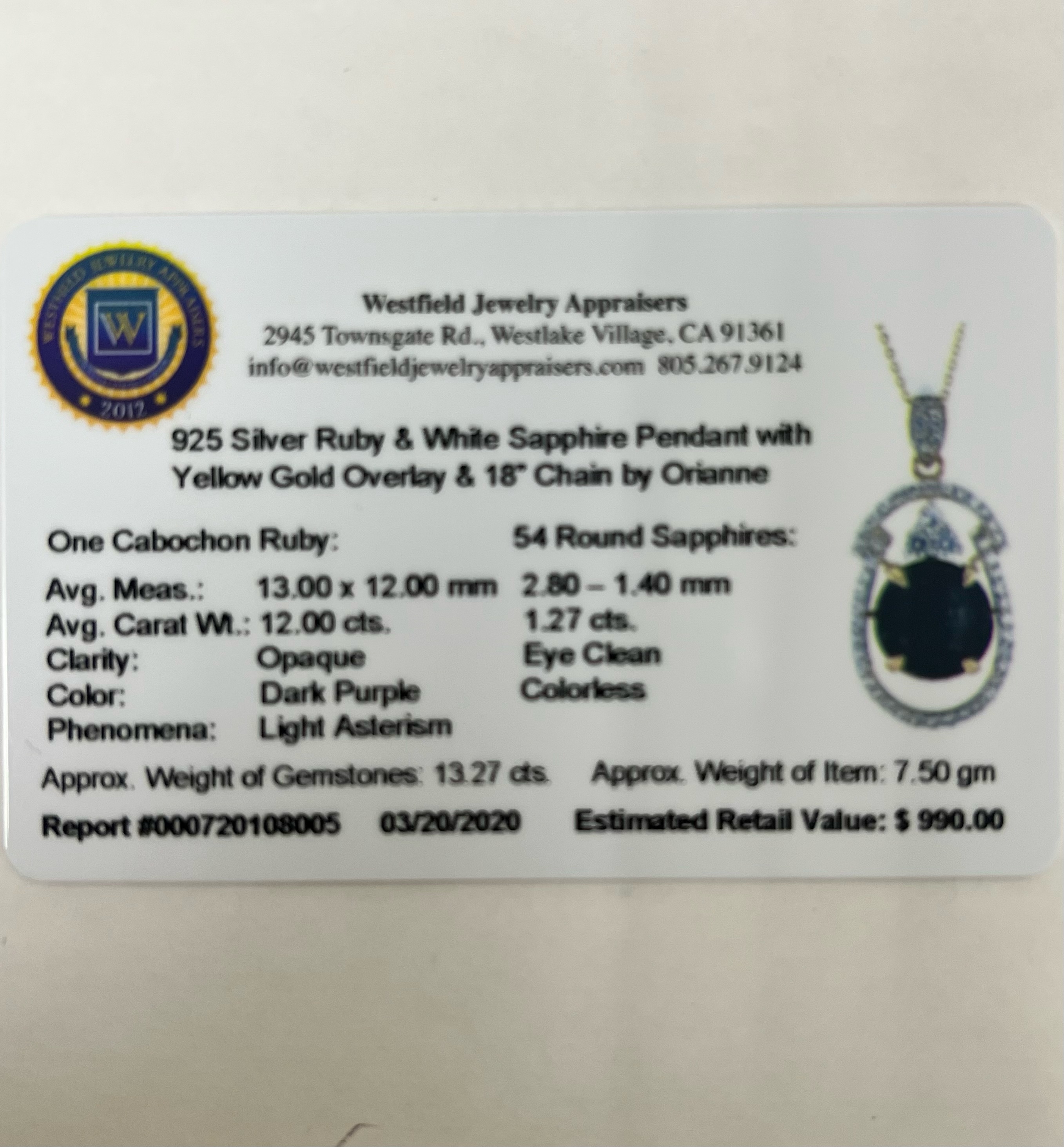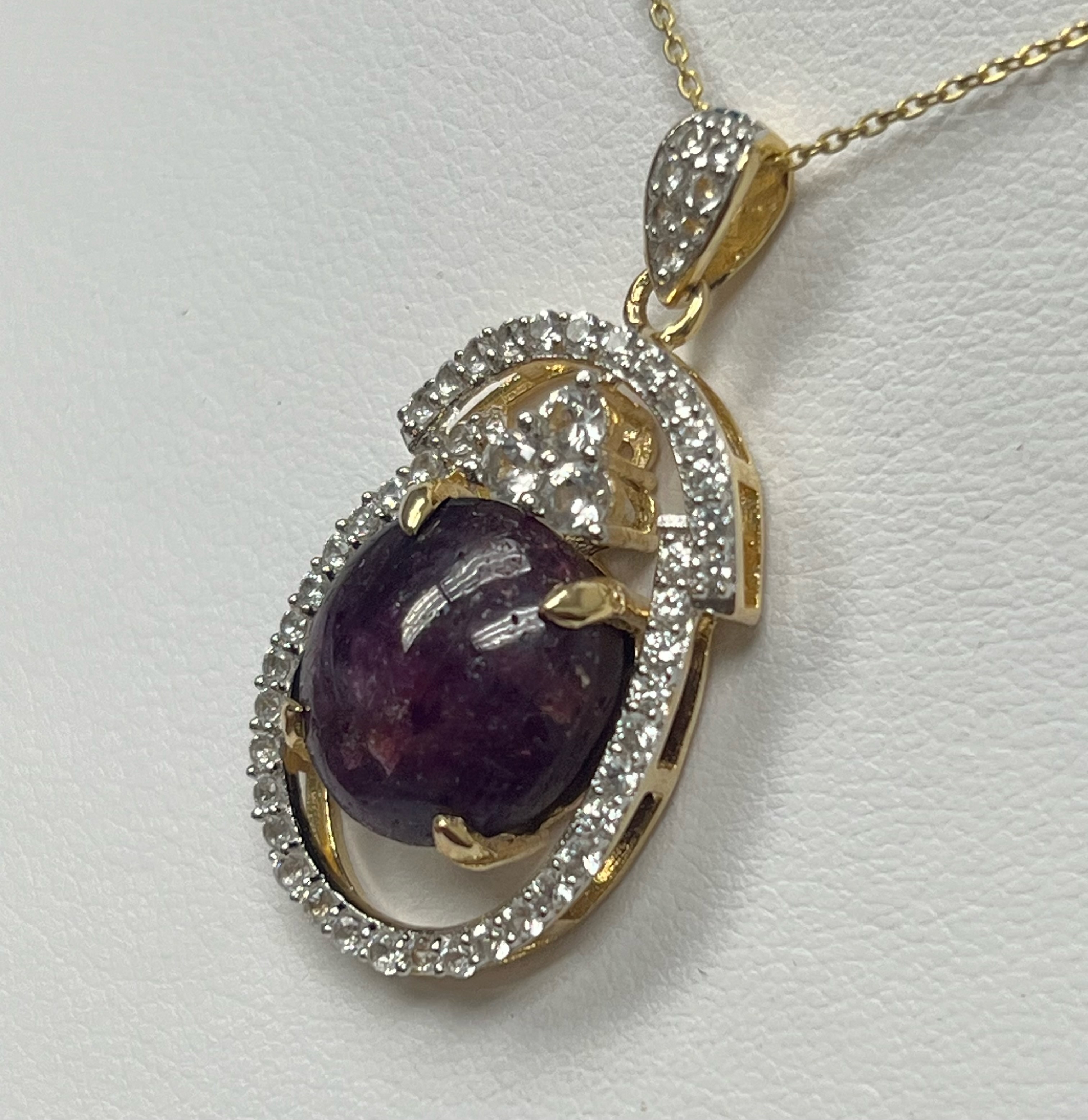 RUBY AND WHITE SAPPHIRE PENDANT AND CHAIN SET IN STERLING SILVER