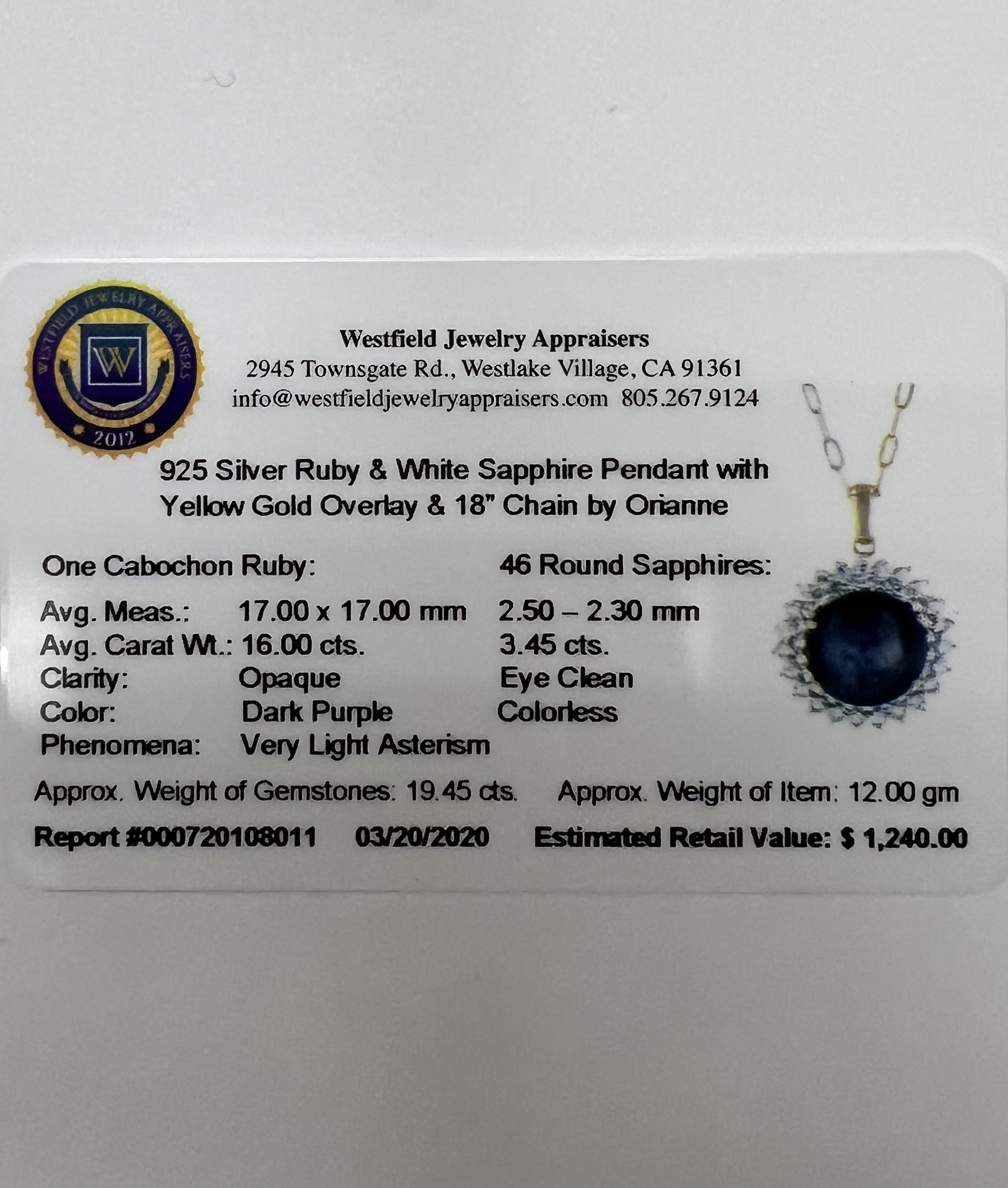 BEAUTIFUL RUBY AND WHITE SAPPHIRE PENDANT AND CHAIN SET IN STERLING SILVER