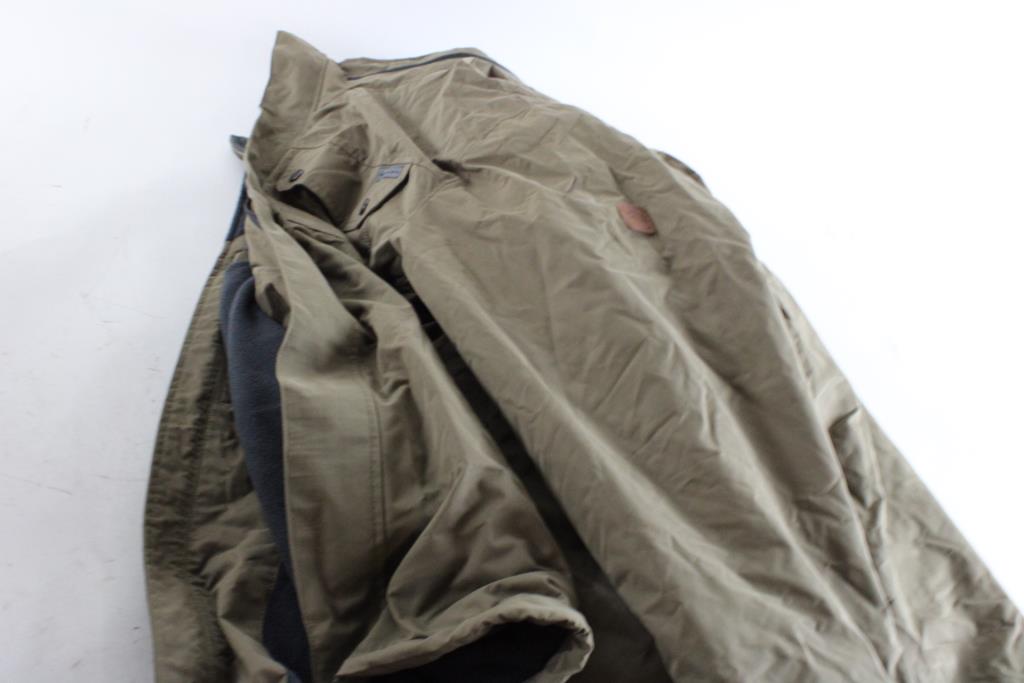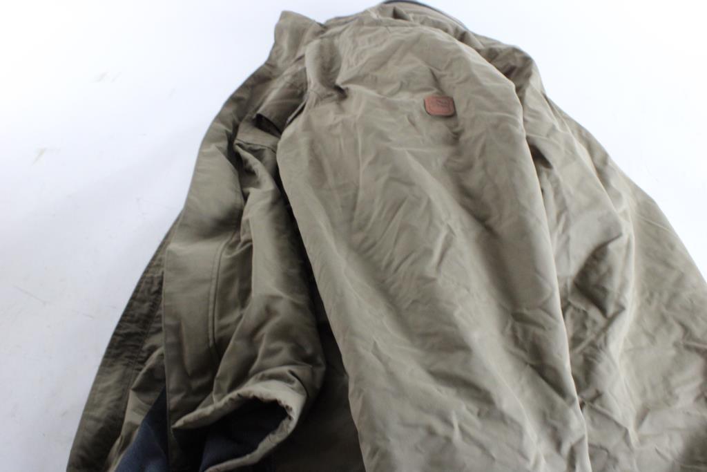- Style: Dark tan/Khaki, full zipper, insulated, concealable hood