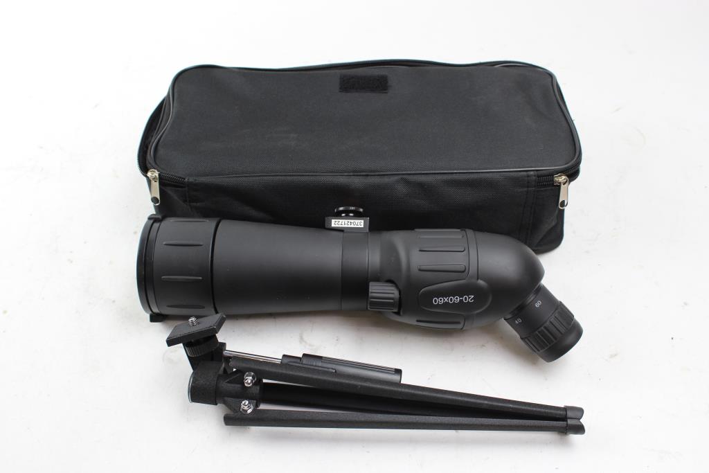 Get a great deal with this online auction for a scope presented by Property Room on behalf of a law enforcement or public agency client. Model: 62774 Magnification: 20-60x Accessories: tripod and carry bag Length: aprox. 13" Cosmetic Condition: Very good, no visible wear Testing Results: scope was focused and functioned
