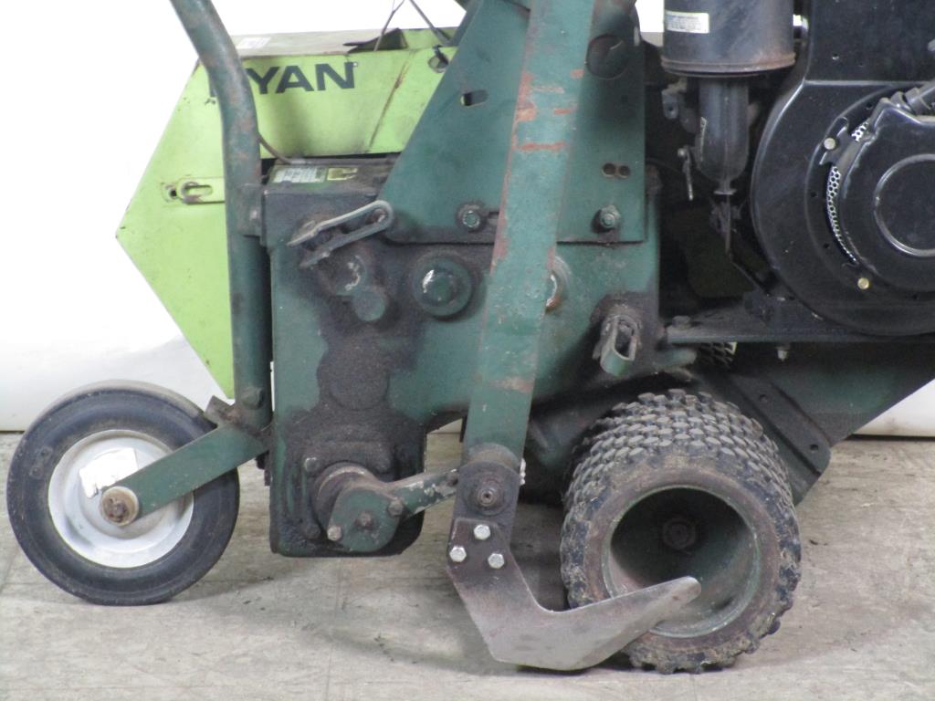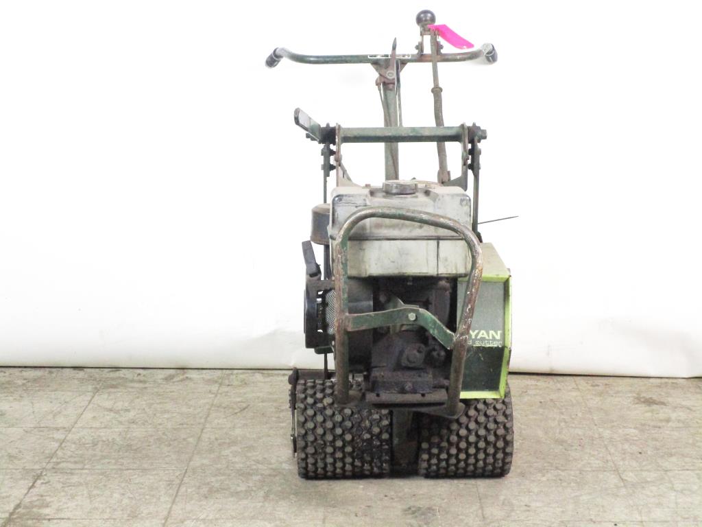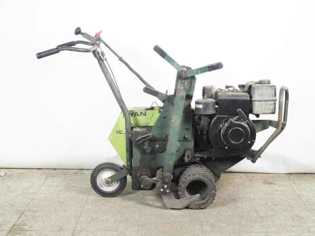 Get a great deal with this online auction presented by PropertyRoom.com on behalf of a law enforcement or public agency client. Brand:Ryan Model: 544845 Color : Green and Black Gas powered, pull ord start, Honda GX160 Engine: 160 cc and 5.5 HP Honda GX160 Engine.Easy Handling:Self-propelled technology and maximum traction is offered by the cast iron drive wheels. These wheels offers optimal traction and stability while holding 90% of the machine's weight. Vibration is lessened by the vibration dampening handle support springs that reduce vibrations in the handle assembly and 4 elastomeric handle isolators that isolate vibration from the machine before it reaches the handle. Pneumatic Rear Caster Wheel: Maneuver effortlessly around curved landscape, make tight turns easily, and perform contour cutting with this 9 inch x 3.5 inch pneumatic rear swiveling caster wheel that offers vibration isolation. This wheel can also be locked into place to create a perfectly straight cut. Transmission Housing: Designed for durability and a longer life the cast iron gearbox offers durability for heavy-duty use. Drive Wheel: Using the drive wheel lever/engagement you can easily transport this sod cutter without engaging the cutter blade. Operator controls are conveniently placed on or near the handle bar so that you can control the blade depth, blade angle, and engine throttle all from the operator position. Knife Cutting Action: Cut up to 2 inches deep at 20 times per second for consistent cutting and less vibration. - Measurements: 38" T X 25" W X 53" L.