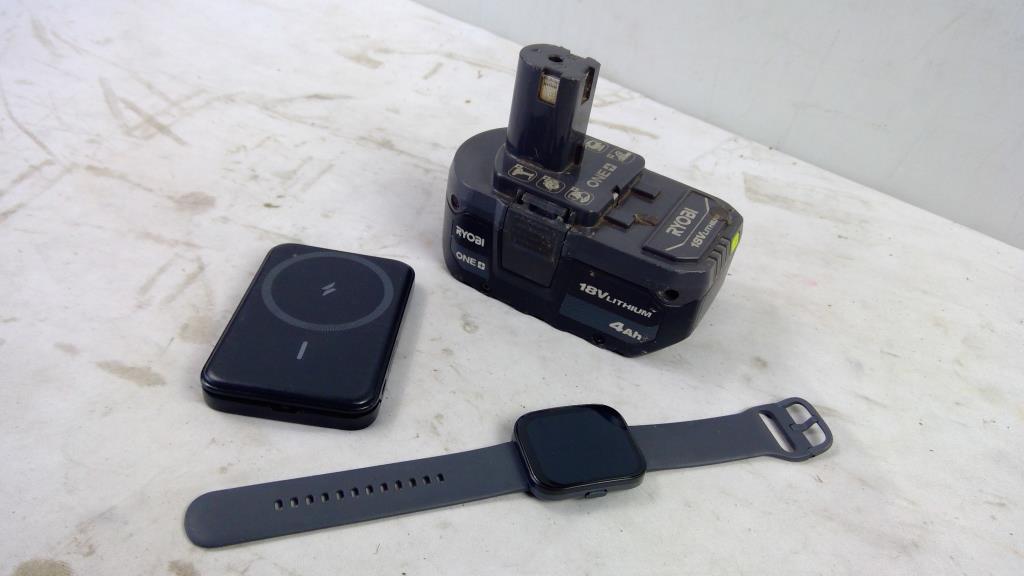 Ryobi Battery, Anker Magsafe Powerbank, Smartwatch