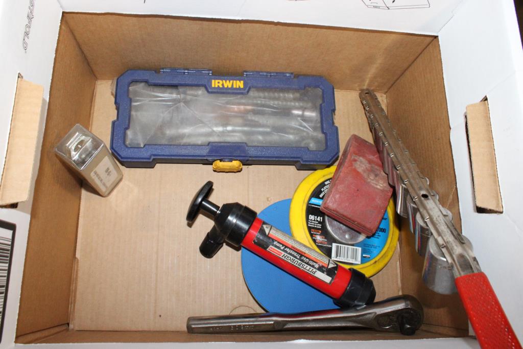 Get a great deal with this online auction presented by PropertyRoom.com on behalf of a law enforcement or public agency client. - Ryobi Drill, Black & Decker drill, socket set, irwin bit set, pittsburgh transfer pump & more