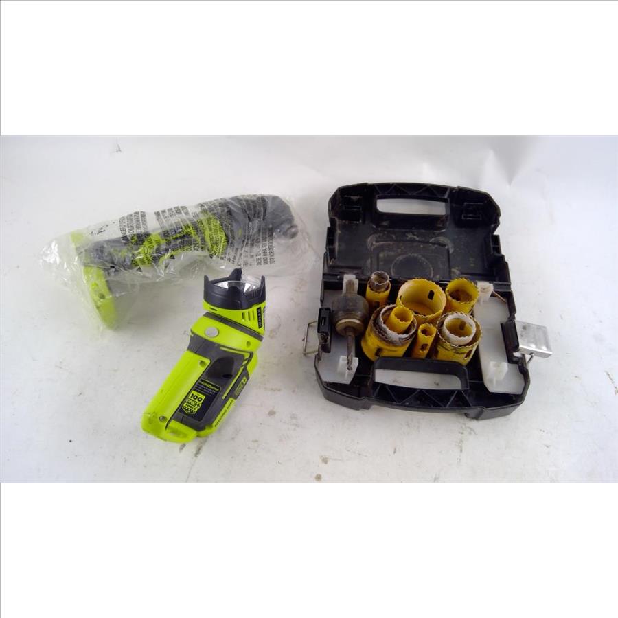 Get a great deal with this online auction presented by PropertyRoom.com on behalf of a law enforcement or public agency client. - Ryobi Drill , Ryobi Worklight, Dewalt Hole saw