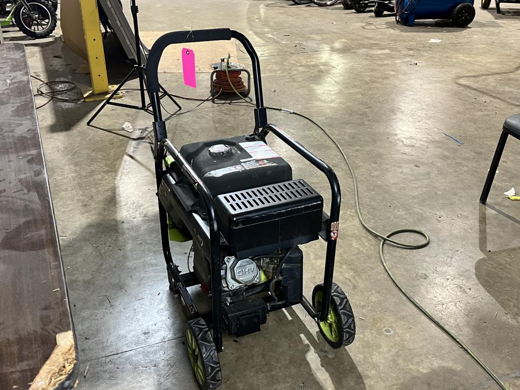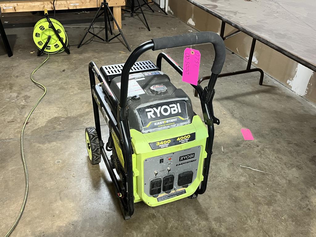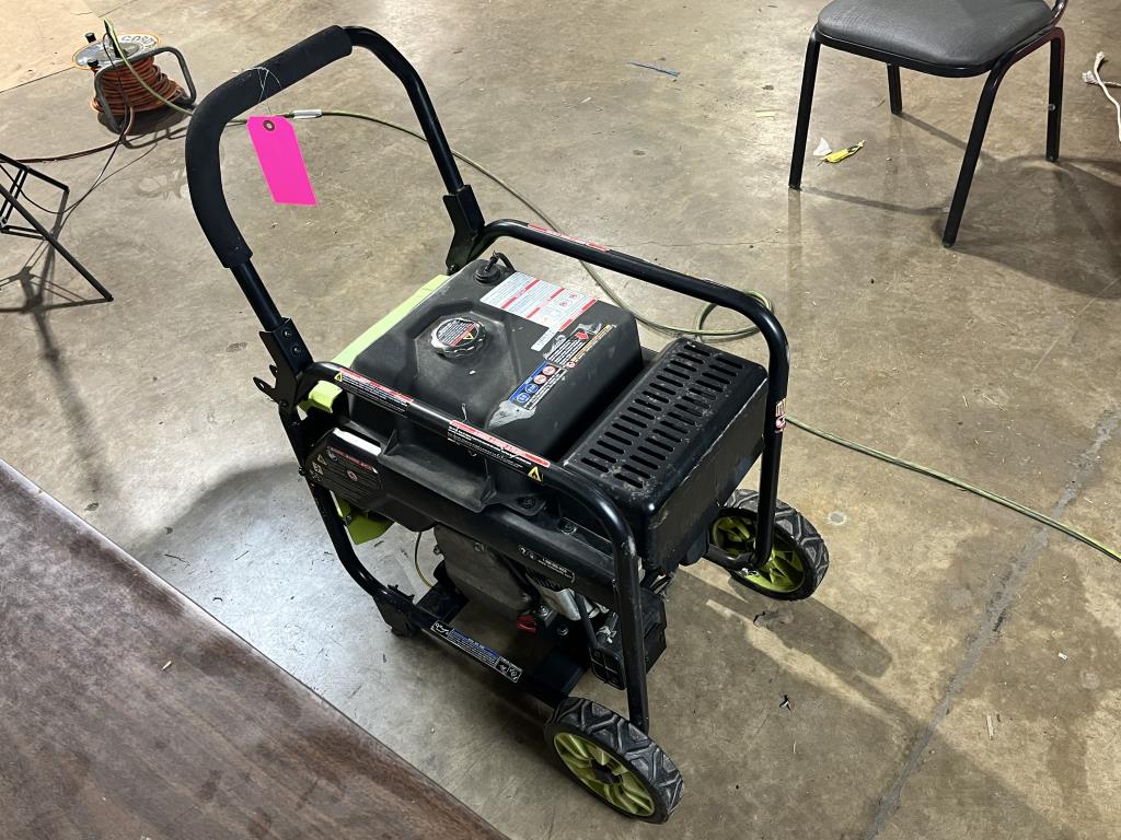 - Item info: gas powered, pull cord start, 3400 running watts, 4000 starting watts, auto idle switch, overload reset button, dual 120/240v plugs, single 120v/ 30amp